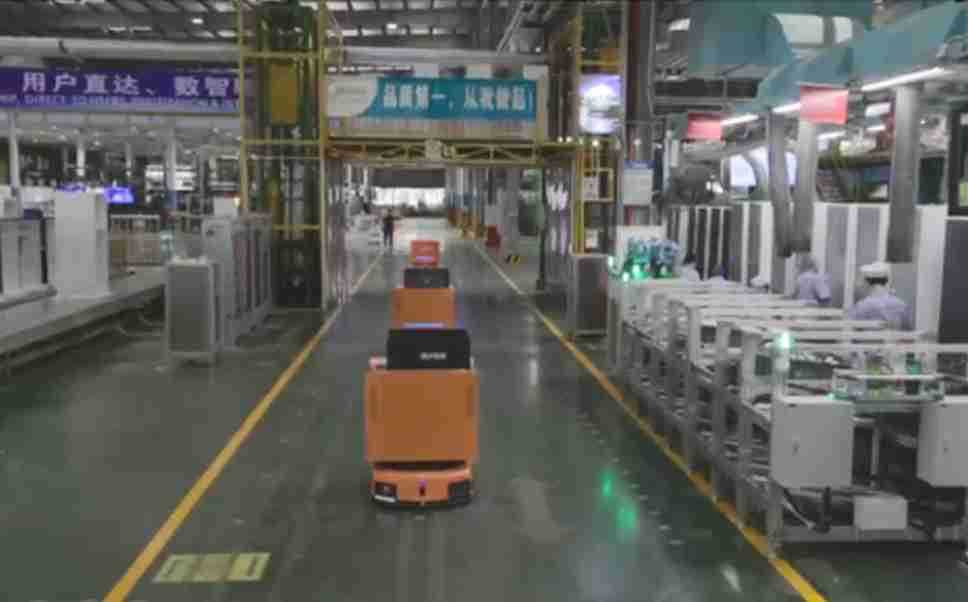 为车载冰箱物流配送打造的智能解决方案,,,包含产中物流通过潜伏举升AMR搬运至线边,,,,产后成品物流智能仓储,,,,流程包含产中物流智能齐套入库,,,,线边安灯叫料AMR智能配送至线边,,,成品入库、、、、出库,,通过无人堆高车机器人,,,智能仓储管理替代人工作业管理,,,,实现更高存储、、、、更高效率、、、更具柔性化的解决方案。。。。